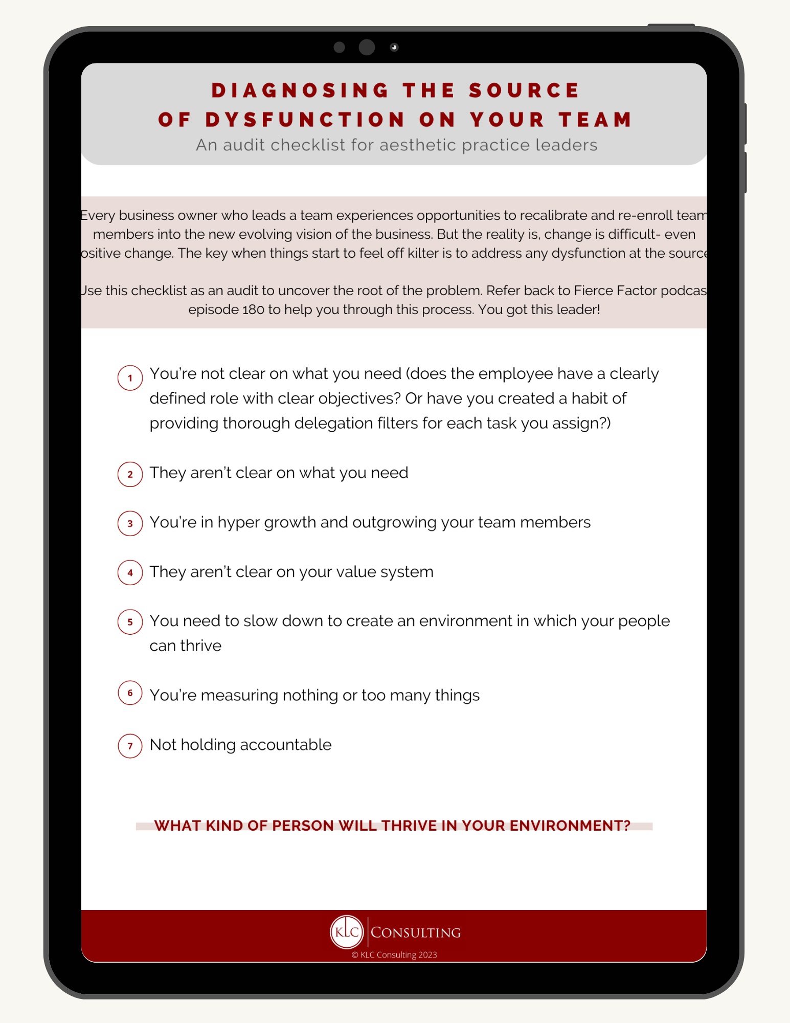 Use this checklist as an audit to uncover the root of the problem. Refer back to Fierce Factor podcast episode 180 to help you through this process.